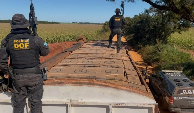 Policiais militares do DOF (Departamento de Operações de Fronteira) apreenderam ontem, segunda-feira (19), em Dourados, uma carreta caçamba carregada com mais de 42 mil pacotes de cigarros contrabandeados do Paraguai.