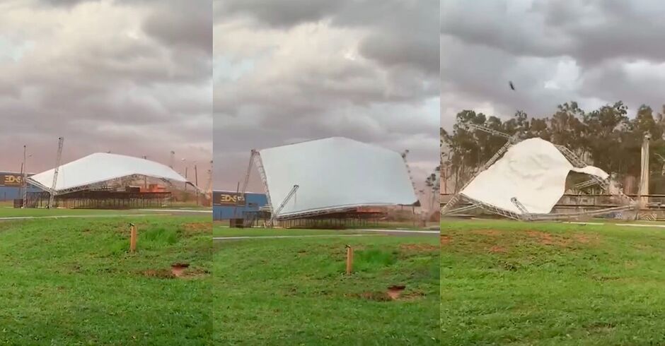 Um forte vendaval atingiu o município de Naviraí, no sul de Mato Grosso do Sul, e causou estragos na estrutura montada no Parque de Exposições Tatsuo Suekane, local onde serão realizadas as festividades em comemoração aos 62 anos da cidade, na tarde desta terça-feira (4).