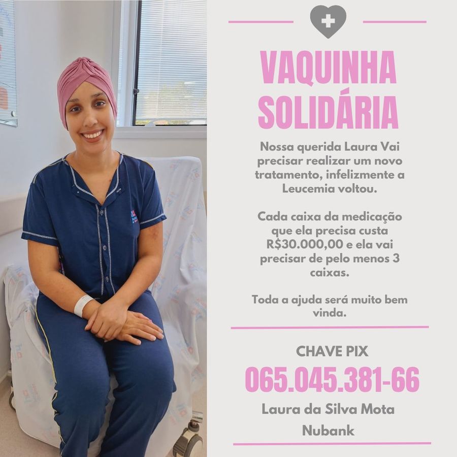 Segundo a equipe médica de Barretos (SP), onde ela recebe atendimento, Laura precisa com urgência de três caixas do medicamento Venetoclax, sendo que, segundo a família, cada caixa custa aproximadamente R$ 30 mil, perfazendo a necessidade de um investimento de R$ 90 mil, valor que os familiares não possuem.