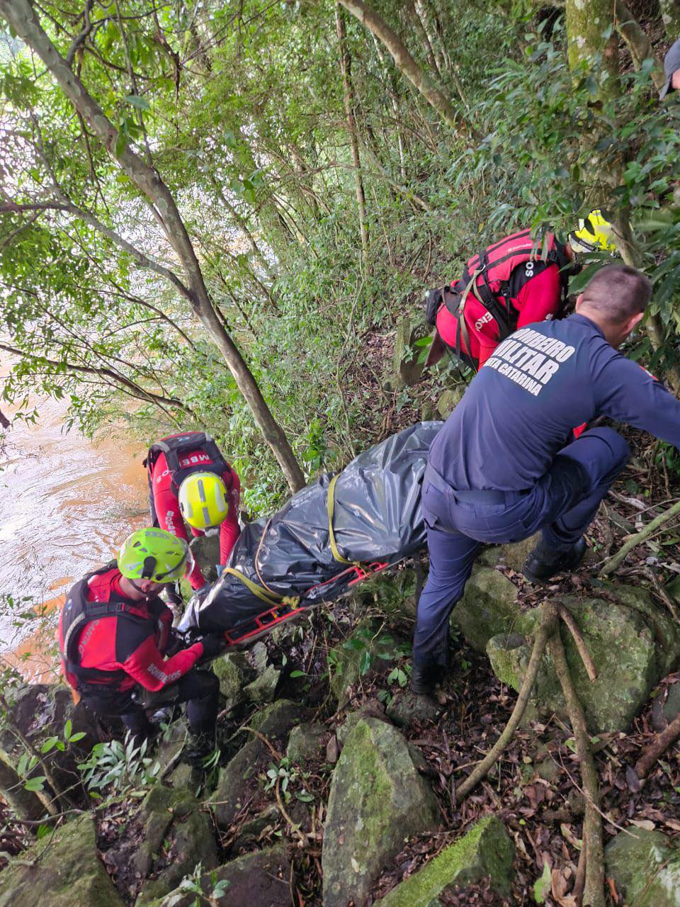 A vítima, feminina maior de idade, estava presa em uma das margens do rio chapecozinho em um local de difícil acesso, aproximadamente a 10km do local do acidente do dia 1°.