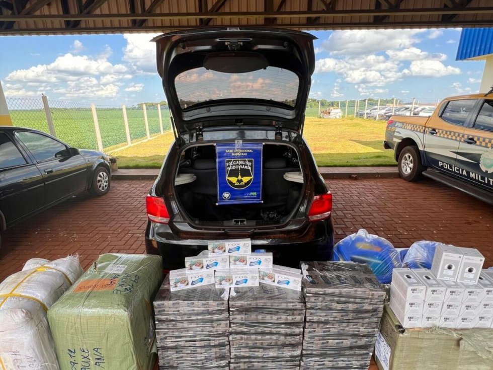 Uma fiscalização de rotina do Batalhão de Polícia Militar Rodoviária (BPMR) resultou em um prejuízo de R$ 269.560,00 para o mercado do contrabando na tarde desta terça-feira (6). A ação ocorreu no km 158 da rodovia MS-162, em Maracaju, quando a equipe da Base Operacional realizava o policiamento focado no combate a crimes transfronteiriços e abordou dois veículos de passeio.