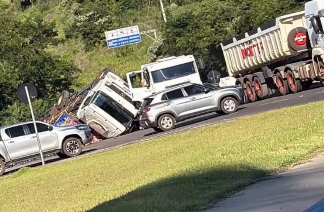 A carga de bebidas caiu e interditou uma das pistas.