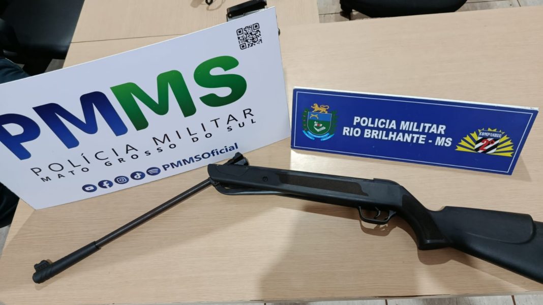 Os policiais militares localizaram uma arma de pressão, que foi apreendida e encaminhada à Delegacia de Polícia Civil.